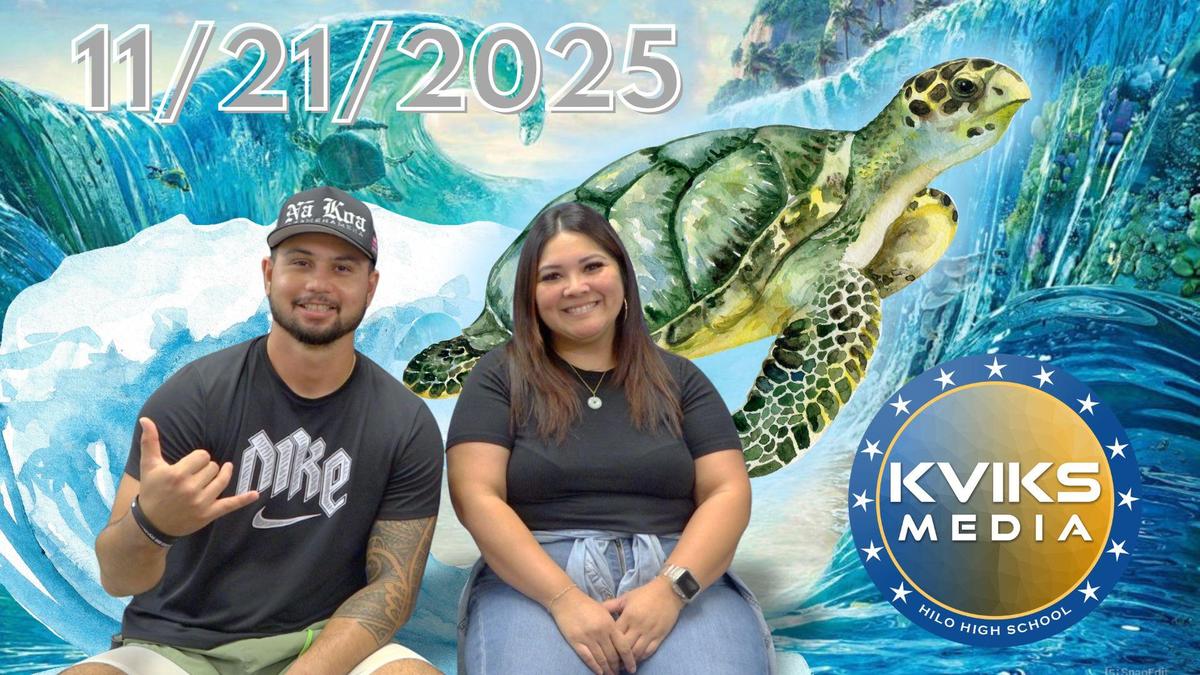 [T] Good Morning Vikings! This is your K-V-I-K-S News Bulletin for Friday, November 21th, 2025. My name is Ms. Tiffany and my name is Mr. Kea. Today's periods are 1, 3, 5, and 7.