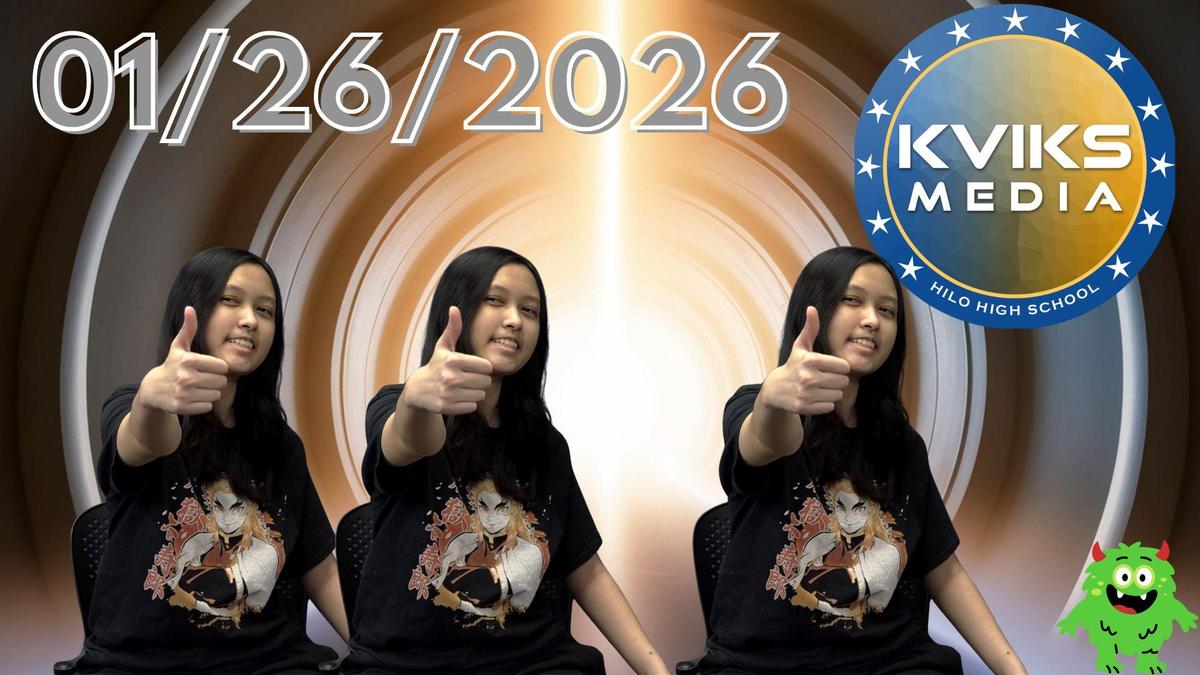Good morning Vikings! This is your K-V-I-K-S News Bulletin for Monday, January 26, 2026. My name is Mahea. Today's periods are 2, STARS, 4, and 6.